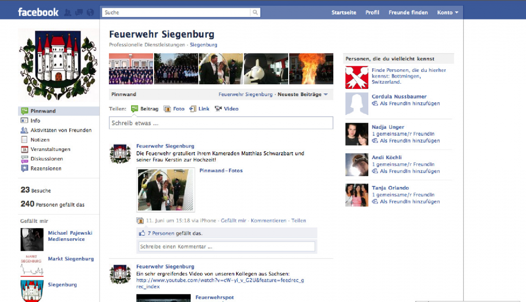 Abbildung 13: Screenshot: Facebook-Seite der Feuerwehr Siegenburg
